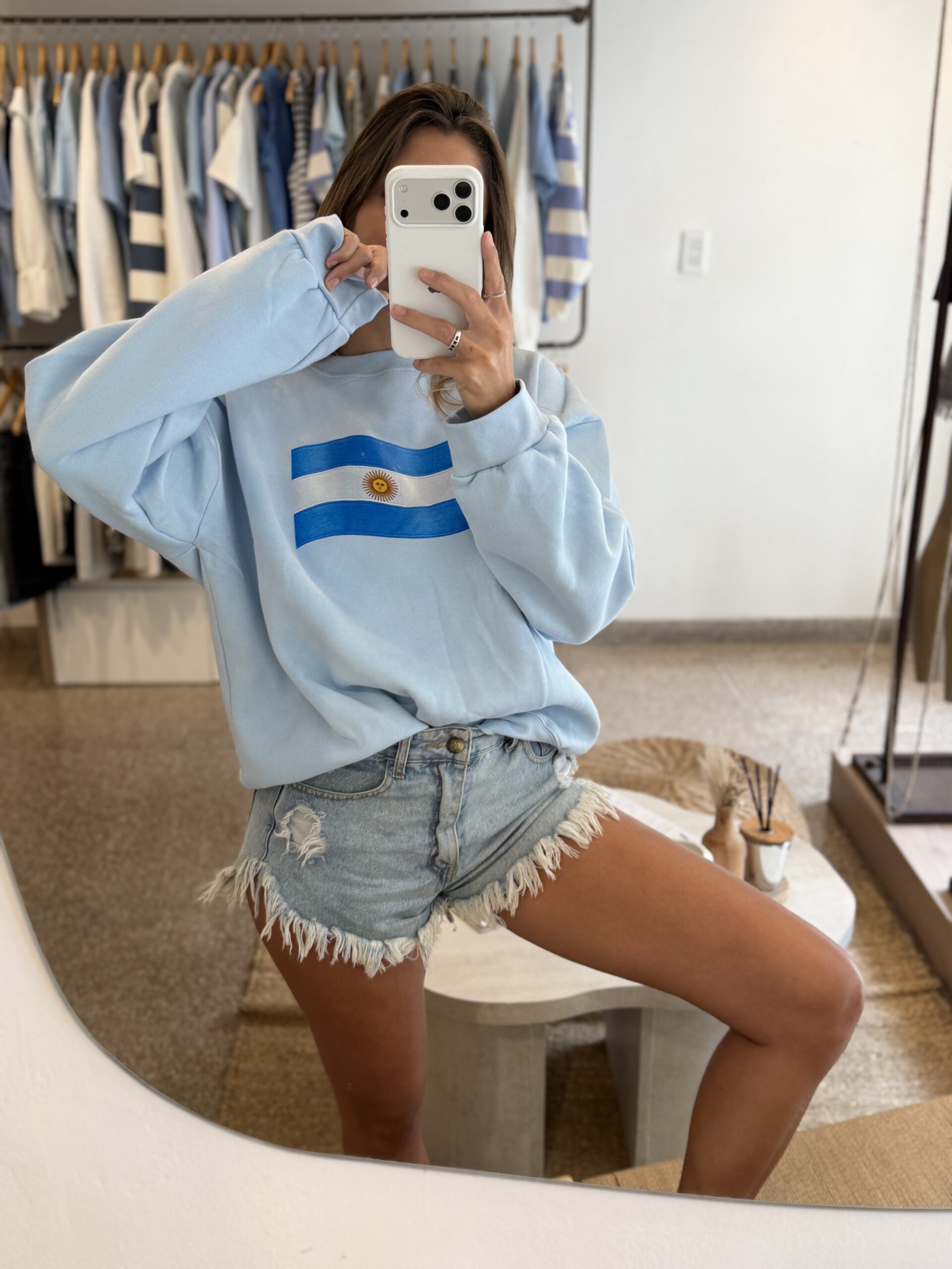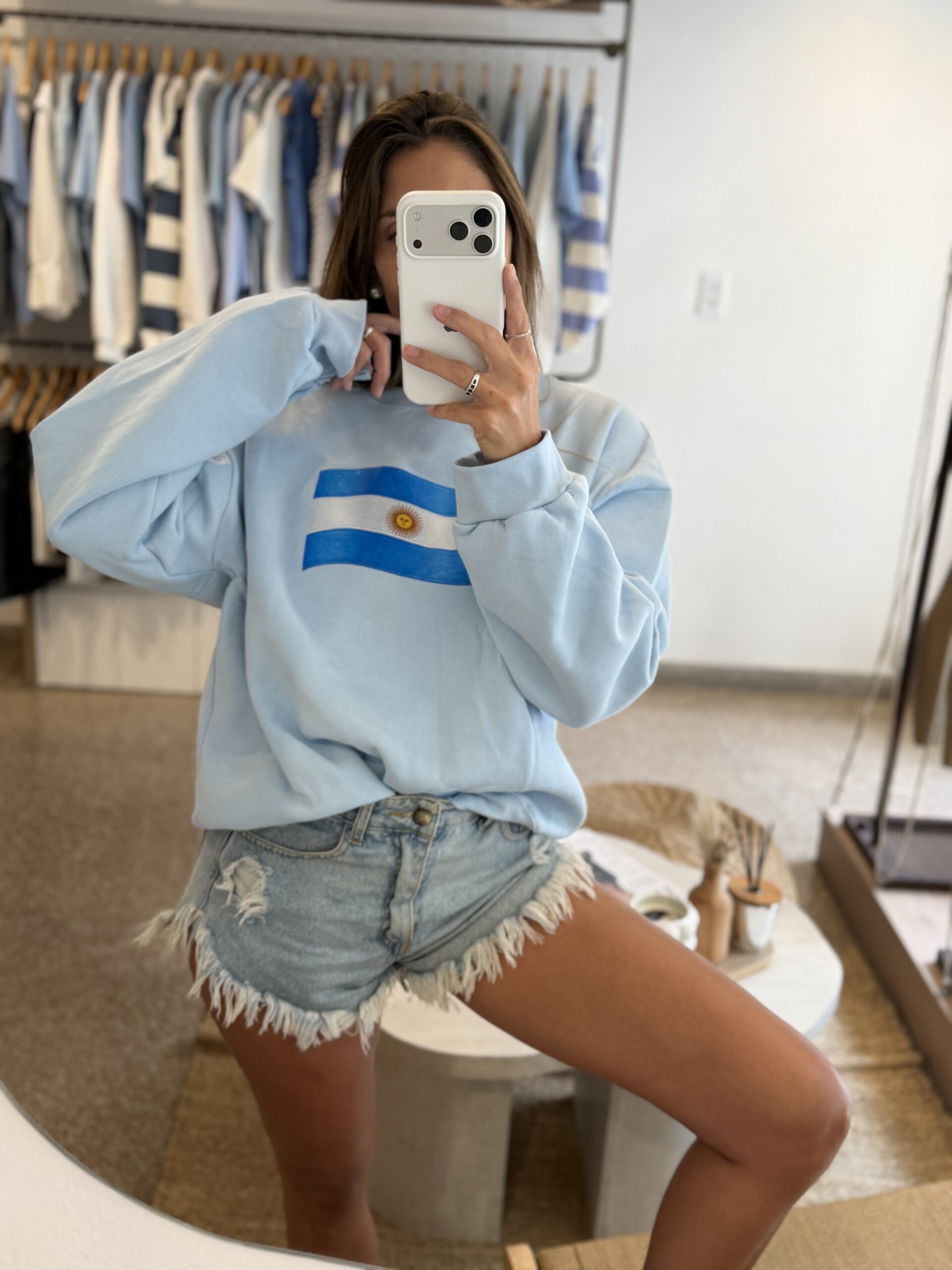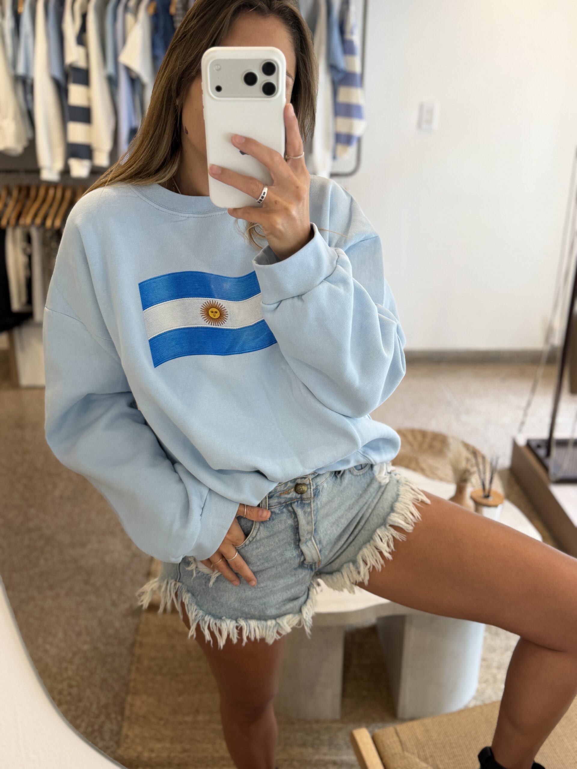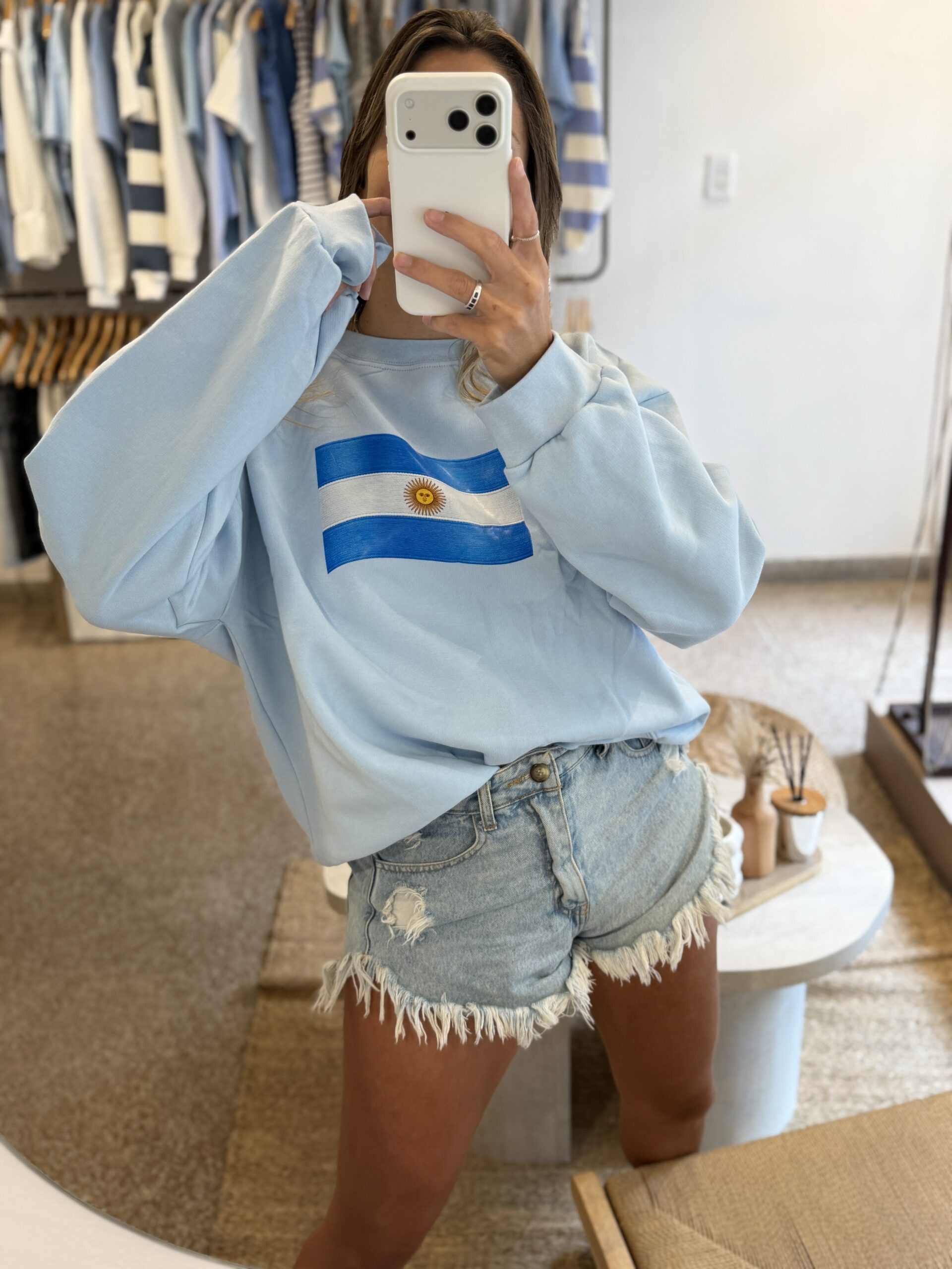 Buzo oversize frizado con estampa.