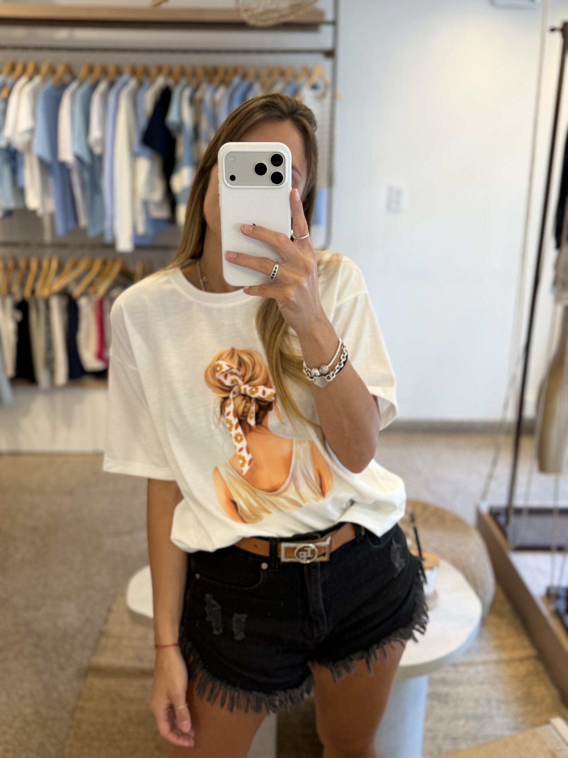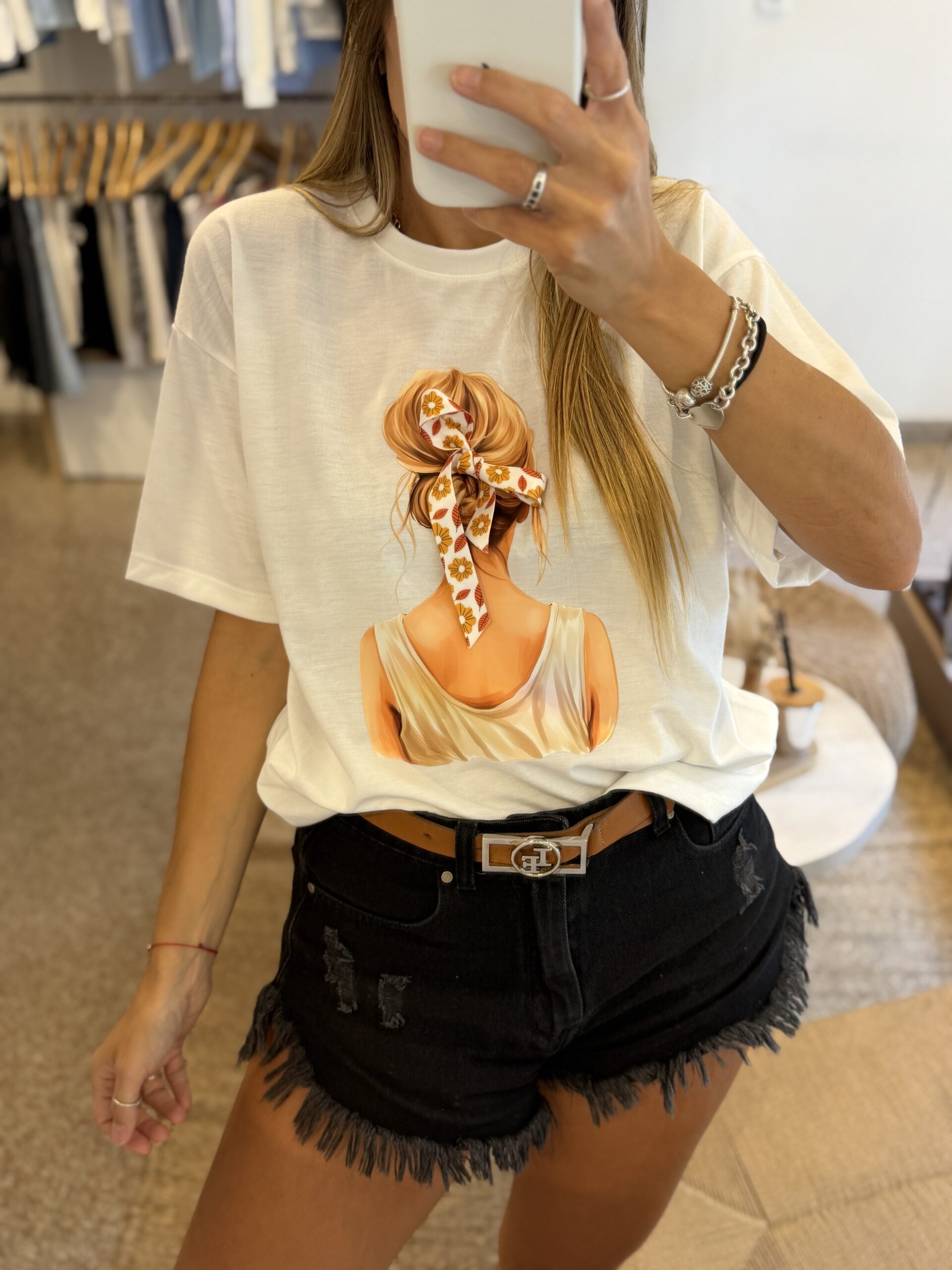 Remera de algodón con estampa y lazo